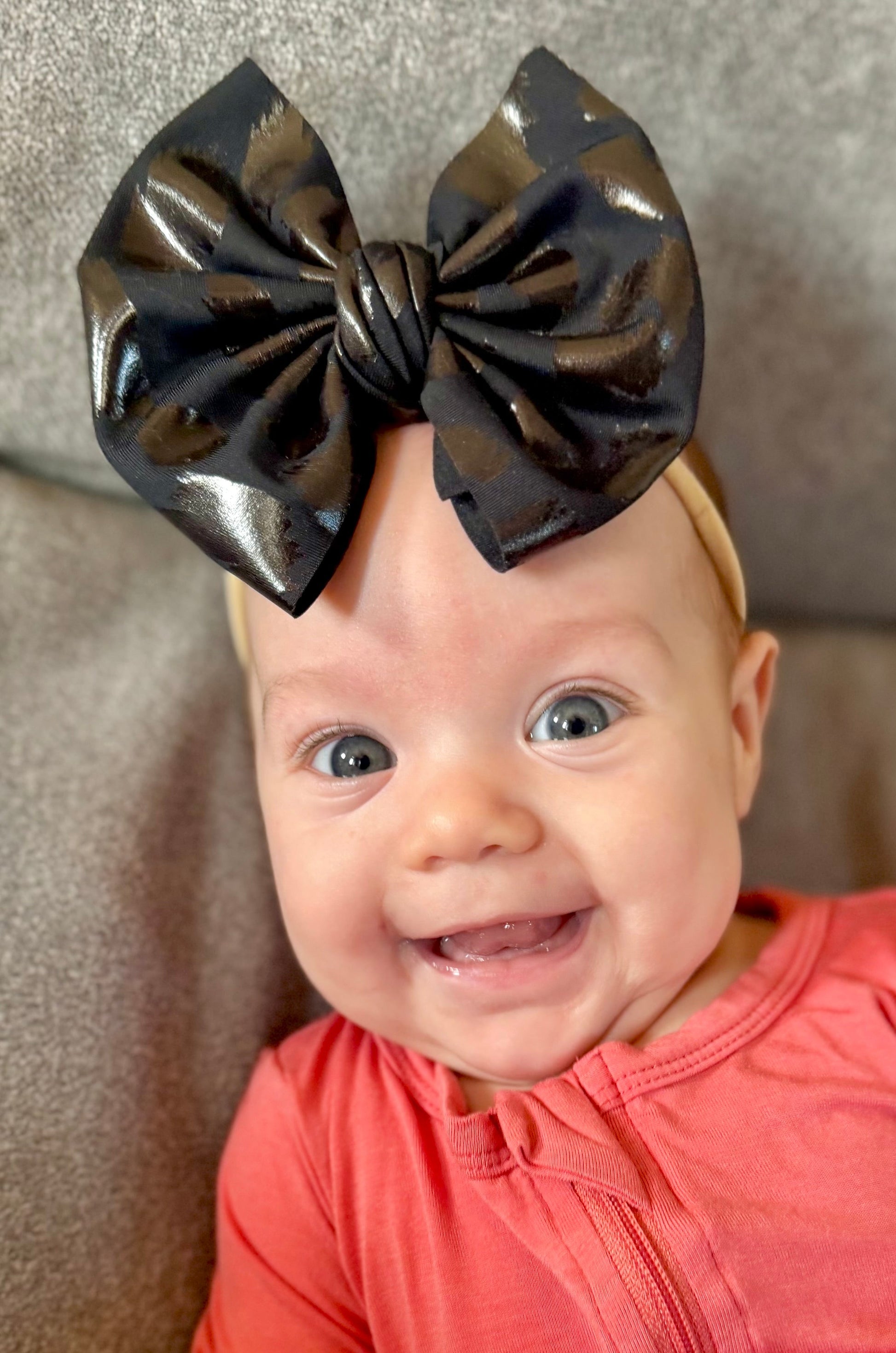 This black leopard bow is made with stretchy spandex for the perfect fit and all-day wear.